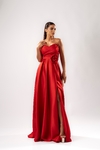 Poderoso e romântico na medida certa, este vestido é feito para momentos inesquecíveis. O busto com decote coração e drapeado estruturado valoriza o colo com elegância, enquanto a flor aplicada na cintura acrescenta um toque delicado e exclusivo.